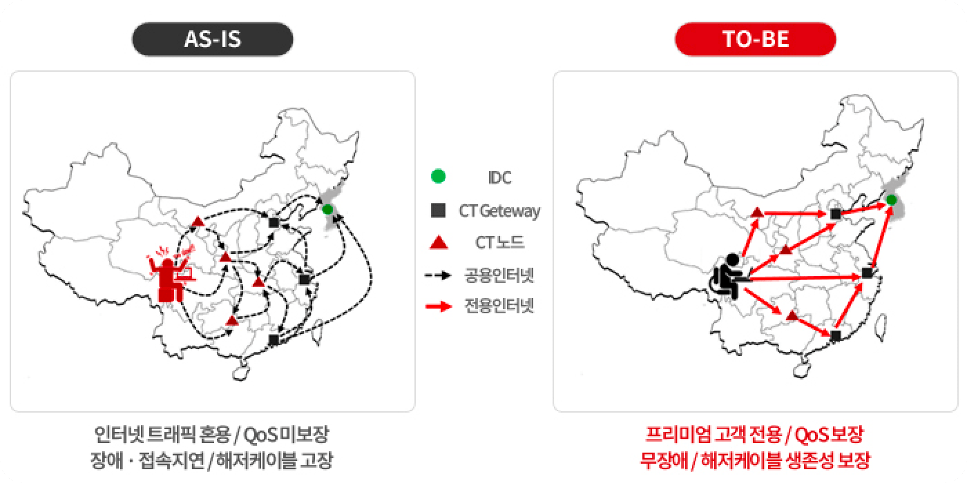 중국 최대 유선 사업자인 China Telecom의 차세대 인터넷망(CN2)을 통한 프리미엄망 서비스를 제공합니다.